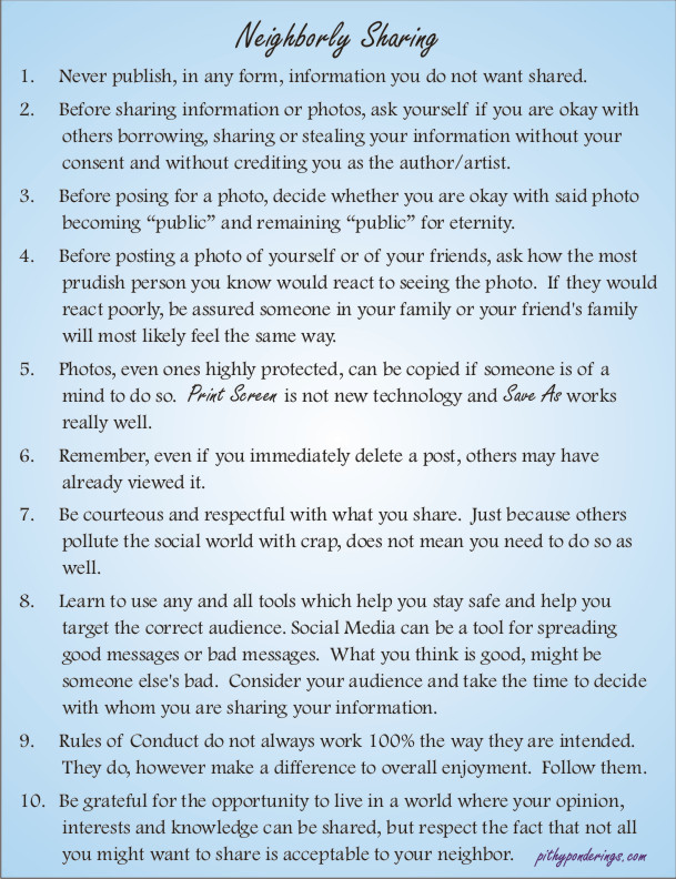 I have become a huge fan of using technology and social media to communicate with distant acquaintances and friends. I have found social media to be an enjoyable way to connect, but I always utilize the advice of my mother, my journalism instructors and my own common sense.