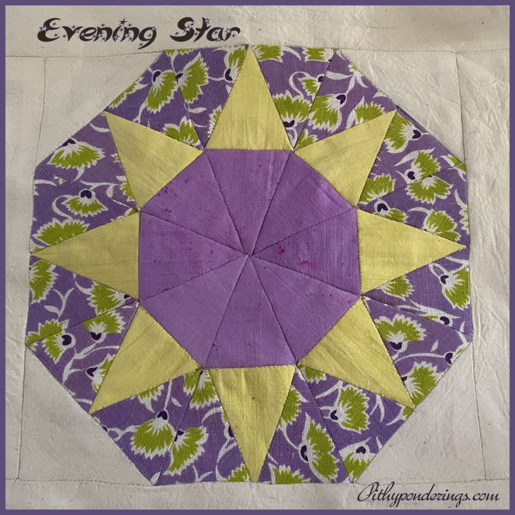 The first block in a series of paper pieced blocks I plan to make (and share) over the next few months. I have a rough plan for a sampler quilt drafted in my quilting software*. For the blocks, I plan to use a combination of vintage fabrics I have collected over the years, hand dyed fabrics I created early in my dyeing exploration, and some unbleached muslin I have in abundance. I will decide on sashing fabric once all the blocks are constructed.